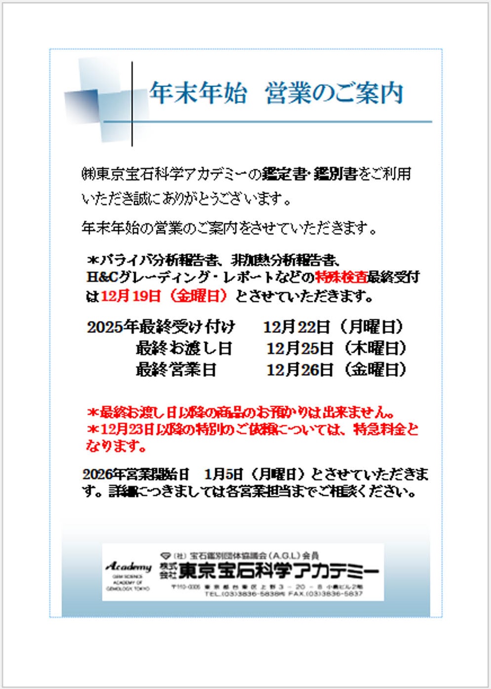 2025/10/22 2025 年末営業ご案内のお知らせ